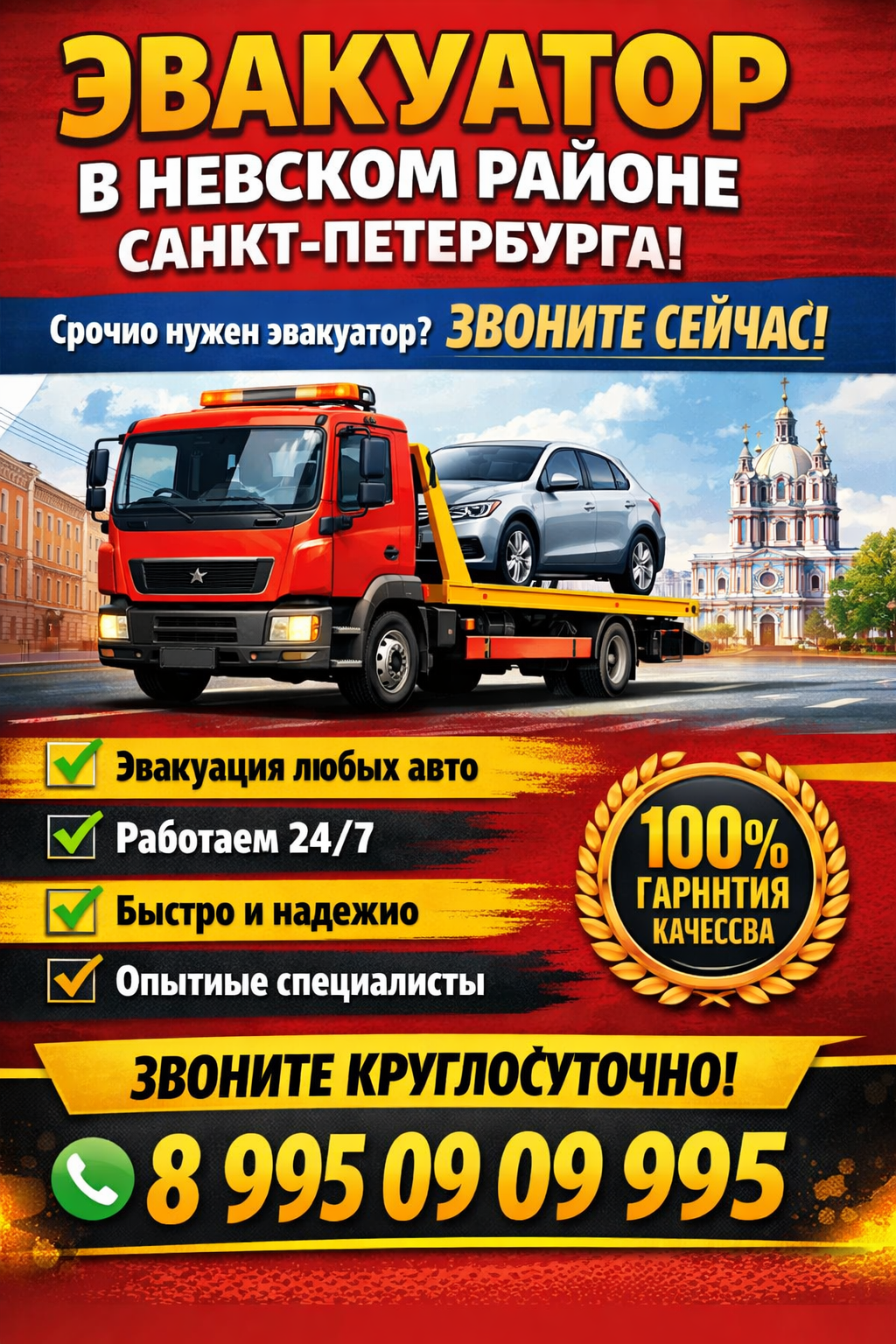 Дежурные эвакуаторы в Невском районе, которые выезжают за 15–30 минут.